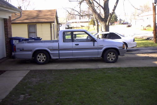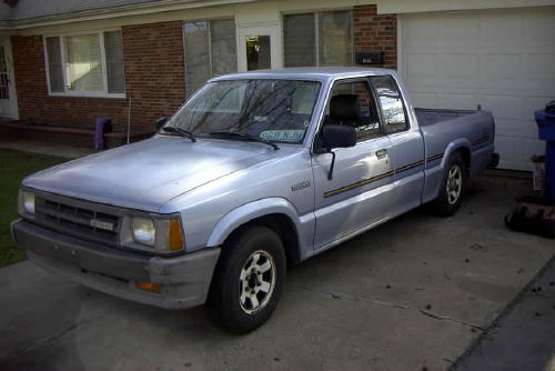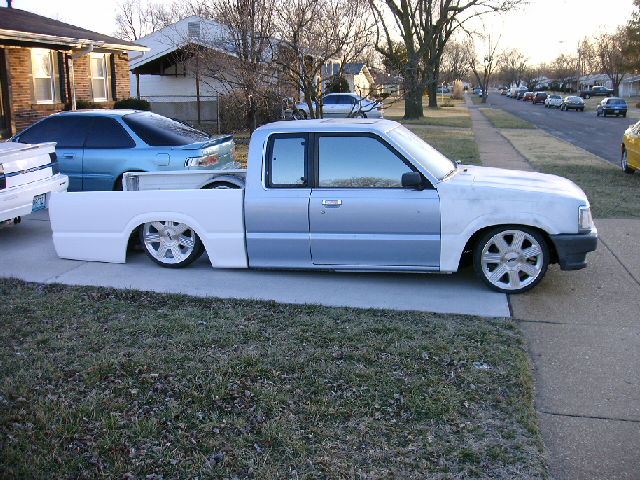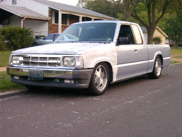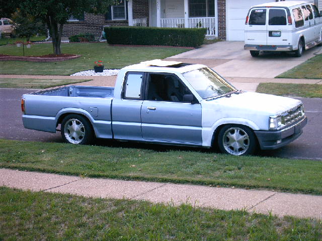 Chrome front bumper and grille, clear corner and bumper lights, shaved door handles, cadillac tail lights, mirror window tint, power removable sunroof, APC H4 conversion headlights. B2600 hood and shaved fenders and cowl wheel tubs in the bed and under the hood