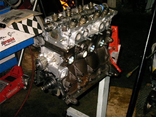 Engine bored .020, new crank , pistons etc. Everything in the motor has either been replaced or machined. So far I have around $1500.00 in the new motor. 32/34 Weber carb, 8mm accell plug wires, NGK spark plugs, accell super coil, pacesetter header, flowmaster muffler, no emissions crap. Motor painted mazda 6 yellow and engine compartment painted alfa romero blue that flips to gold.