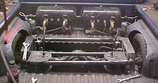 2 3/4" B/D, and full air ride: 2 viair 380's, 2 5 gallon tanks, 8 1/2" SMC's, 1/2" line, wireless airbox remote, 4-link, behind the axle setup using F9000's and 2500's up front.