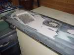 charcoal vinyl with yellow and carbonfiber highlights custom center console . tweed nissan 240sx bucket seats.new carbon fiber AUTOMATIC (haha) shifter knob custom flamed door panels