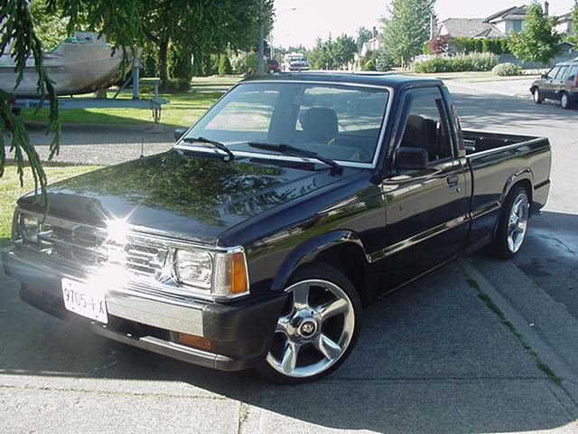 black soon to be primer, frenched plate shaved tail gate handle shaved plastic vent things behind windows. chrome grill and bumper clear tail lights