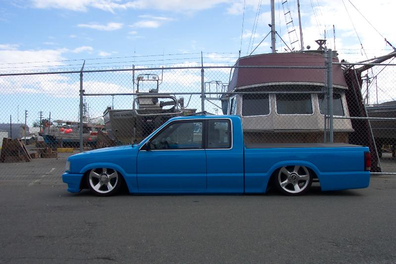 shaved handles,antenna and emblems,custom headlights, roll pan body dropped 2 in painted porsche riviera blue