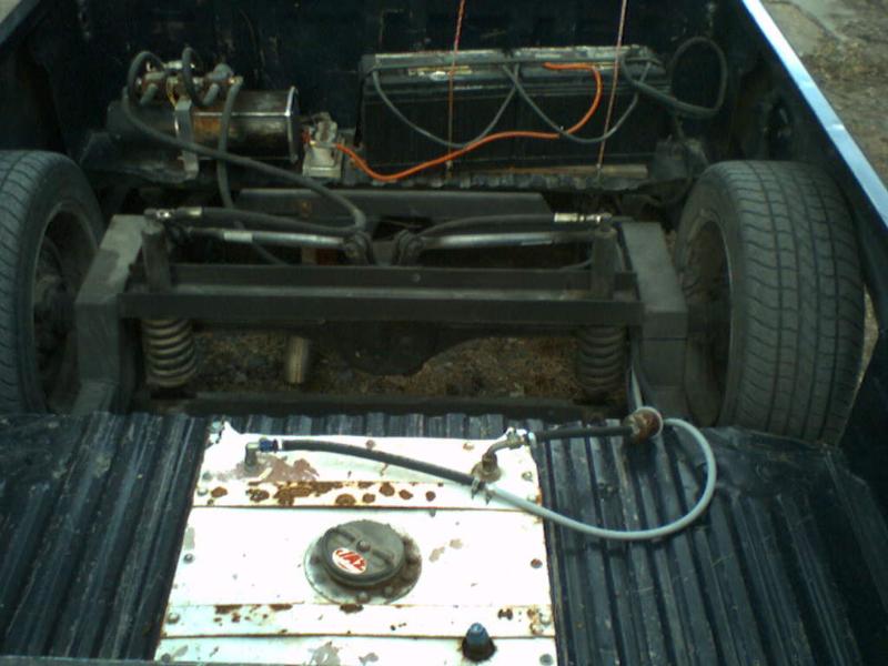 dropped 3 1/2" in front 10" cylinders, 4 link and fuel cell in rear