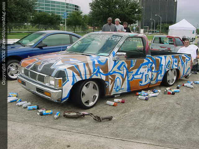 truck was bought with most of it's current mods but all are nasty so thought it would be a good way to learn the right and wrongs of customizing and ive got a lot of work my futre plans are:shave cowl into fenders. redo top,shave doors closed, redo front bags with universal double plays and frame mounted brackets also need to get shocks on all 4 corners. build bridge/ shock mounts on rear. new smooth sheetmetal floor pan and inner bed. new tall shifter im talkin above the dash tall. smooth dash with no holes for a/c panel radio etc. nitrogen supply. redo liscence plate box.body drop an 18's.