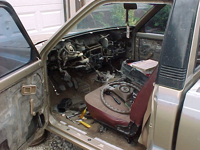 shaved everything, custom tailights (factory mazda lights behind custom pan, PRIMER, soon to be house of kolor deep lilac pearl with some graphics...(4x4 fenders) bottom of cab and bed will be painted to match top half of truck. (bed and cab currently off the truck.)suicide doors!