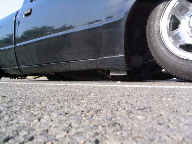Firestone Air bags on all four corners. Custom 4 link. Raised X-Member