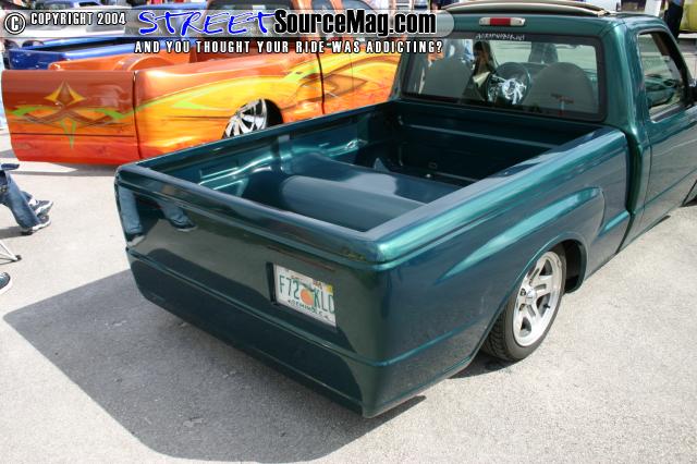 Shaved handles,emblems,molded rear end w/led's,molded cover in bed to cover c-notch, 40x24 tan StreetBeat rag top, Trenz Billet grill inserts,front bumper pieces painted