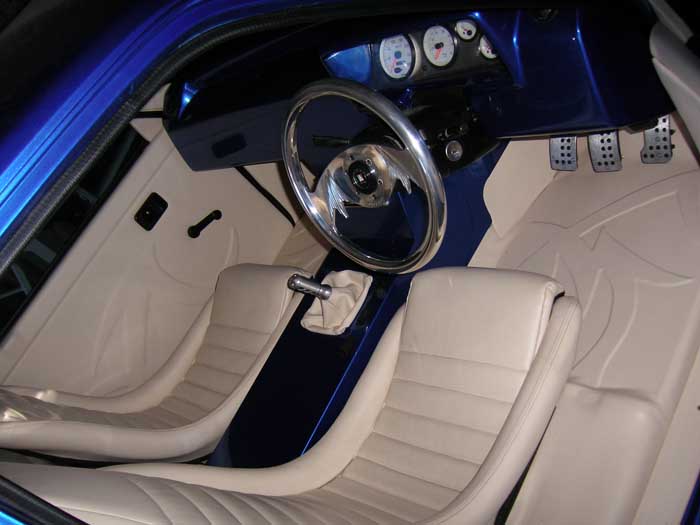 Fully redone light Cream vinyl. Raised out tribal design on doors and floor.