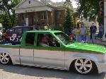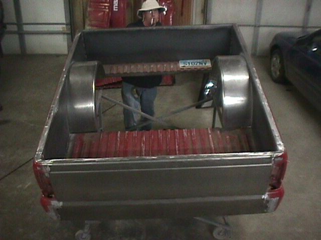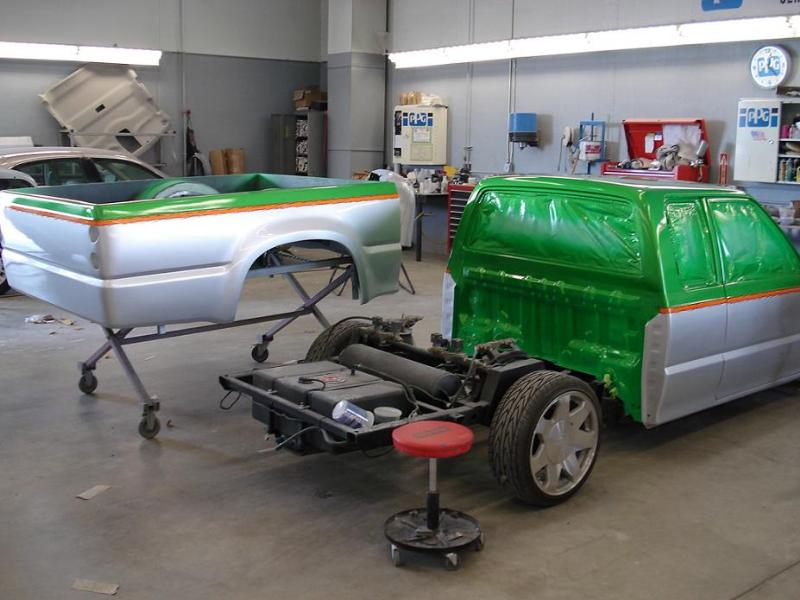 Shaved emblems, mirrors, antenna, wiper cowl, windsheild pissers, door handles, locks, gas filler door, all body seams, cali-combo, and taillights. Frenched clear '59 Caddy taillights, Clear bumper and corner lenses, Billet grille insert, Gas tank removed and fuel cell placed under the bed, Kuryakyn motorcycle mirrors, 4x4 fenders and bed, Inside of bed has completely smoothed sides and floor with wheel tubs and gas filler in floor for fuel cell then sprayed with bedliner, Front bumper has frenched license plate.