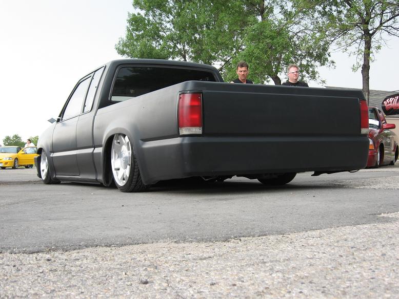 Two-inch drop spindles, four-link, bag over axle, eight 1/2-inch Blitzluft valves and airline, Slam bags, two Viair 380 compressors, 7 gallon tank