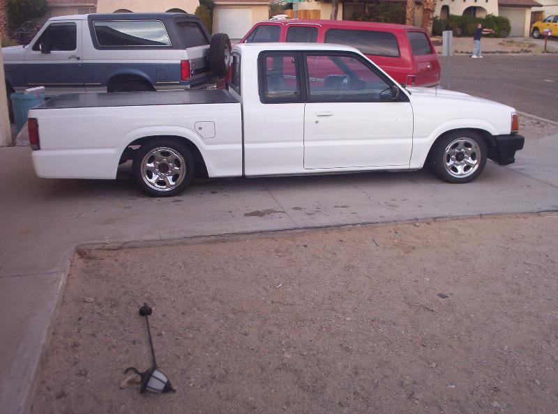 full air bag setup with four link, notch the frame, sliding ragtop, fully shave the whole truck, suicide the doors, 20" wheels