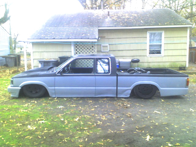 shaved handles,tailgate and handle,35x35 sliding rag,custom hood,3 inch cut floor bodydrop.shaved gas door.two tone primer