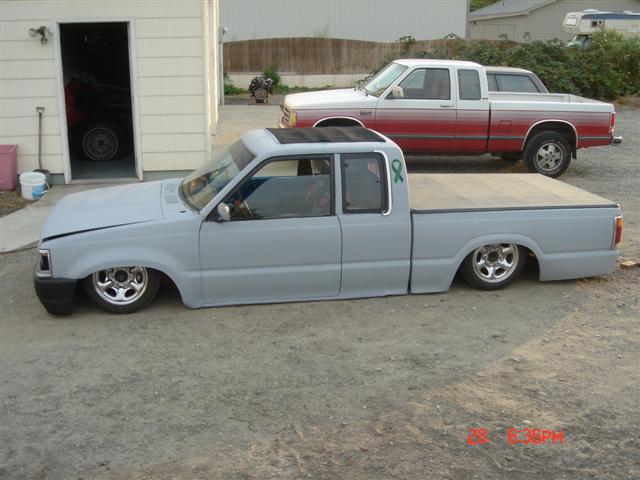 3" body drop, shaved door handles, tailgate handle, tailgate welded shut, hood squirters, wipers, body seams. sliding rag top, yota 4x bumper, chrome grill ,chrome mirrors, few different colors of primer.