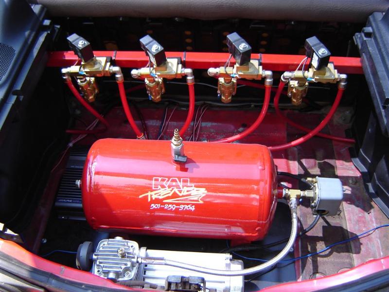 F/B/S/S X-air cylinders with Extreme 450 valves, 1/2" line, Viair 550, 5 Gallon tank. Air suspension by Kal Trendz - http://www.intensegravity.com/kaltrendz/