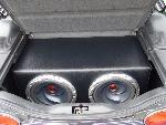 Alpine head unit, 2 sets of 6.5" mbquartz splits, i kenwood 4 channel amplifier, 2 kenwood 400wrms 12" subwoofers, 1200.1 kicker monoblock amplifier, sony ps2 slimline attached to the indash screen.