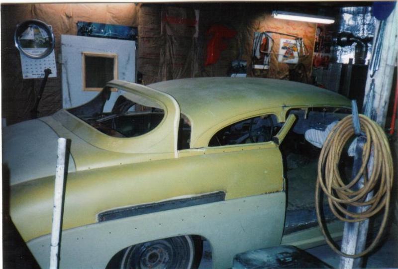 Chopped 4.5 inches in front,7.5 in rear.Channeled 4 inches over 78 Olds Delta 88 frame and floor pan.Frame and floor streched 2 inches to match 1950 Merc wheelbase.Dodge Omni door latches and strikers,Mazda626 trunk latch and cable.