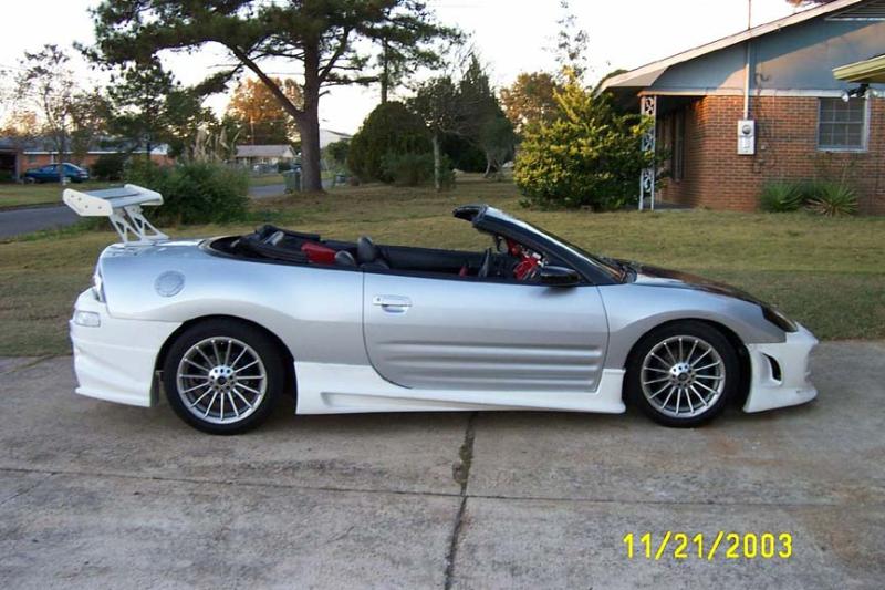 Euro tail lights, aerospeed gas cap, clear third brake light, chrystal clear turn signals in front, clear reverse lights, 2 1/4 catback with dual sebring mufflers, Nakayama 10 " double stack wing, carbon fiber hood with APC hood pins, black vinyl eyelids on headlihgts, Hyper industries blue HID bulbs,red L.E.D. lights custom installed in headlights,B0MEX body kit,SHAVED DOOR HANDLES