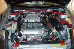 3.0 V6, Injen Cold Air Intake,Oil cap and Fuse box Cover by injen, AEM underdrive pulley on alternator, Blitz Radiator Cap, custom red paint under hood, K&N crank case vent, chrome battery tie-down bracket, chrome bolt covers, custom made aircraft aluminum heatshield for cold air intake, Spoon magnetic oil drain plug, chrome radiator overflow tank with red annodized cap