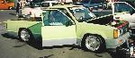 old school hammered with cut springs and 4 inch slant blocks, c-notch by stage 1 customs of corona. This truck was built in 93 and sold in 97. very old school.