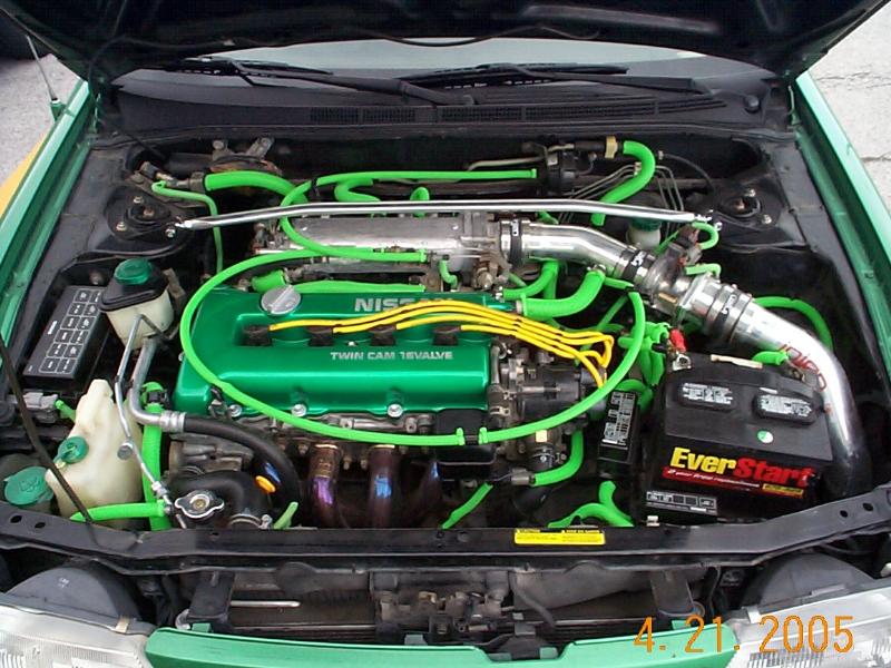 srdode motor,powder coated valve cover, injen intake, custom exaust, weapon r header and downpipe, short shifter, 8mm plug wires, green loom