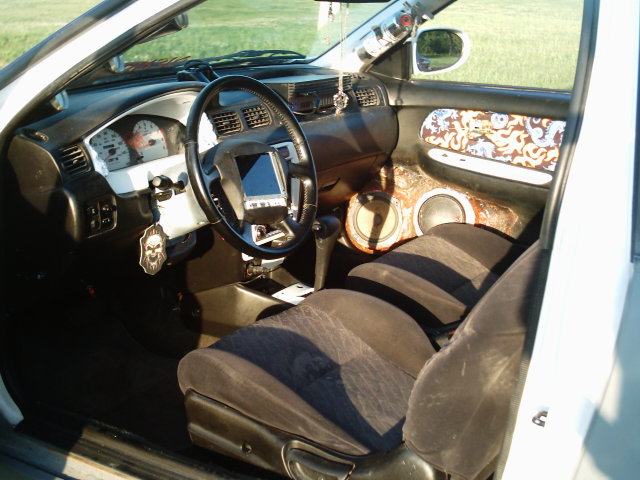 skulls in dash. fiberglass box in rear of car still working on it to and amp rack. Builet box in back seat.