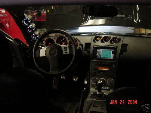 Greddy Profec e-01 boost controller customer mounted in the Navigation compartment, Defi BF series Gauges, Bost, EGT, Fuel Pressure, Defi Link Controll unit Custom installed, and ptpmotorsports Custom 60mm Triple Gauge Pod.