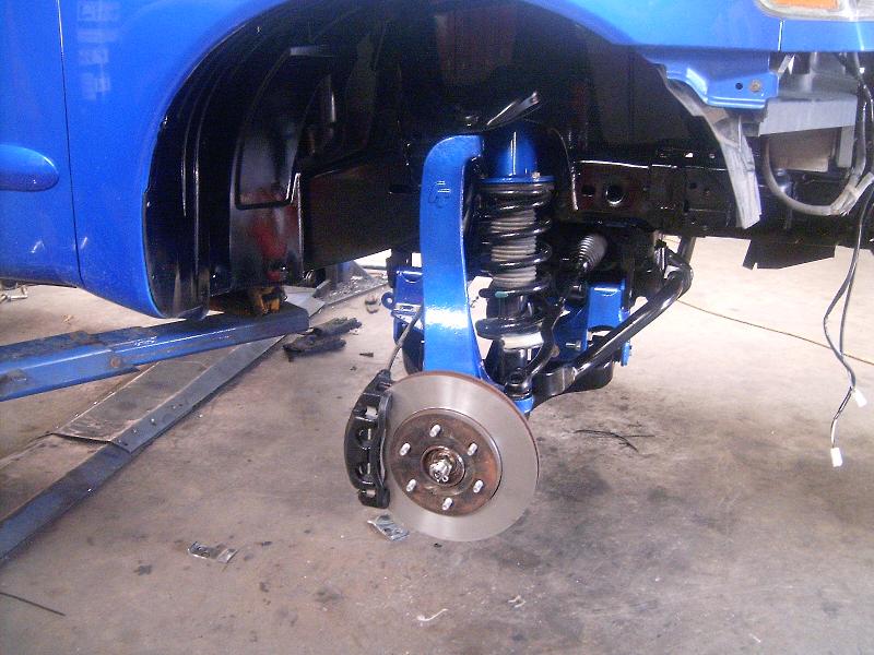 top secret but custom built, slam re82s in the rear, 4 1/2" valves, 2 viair 480s, 1 chrome 5 gallon airtank, all lift powdercoated custom blue to match.