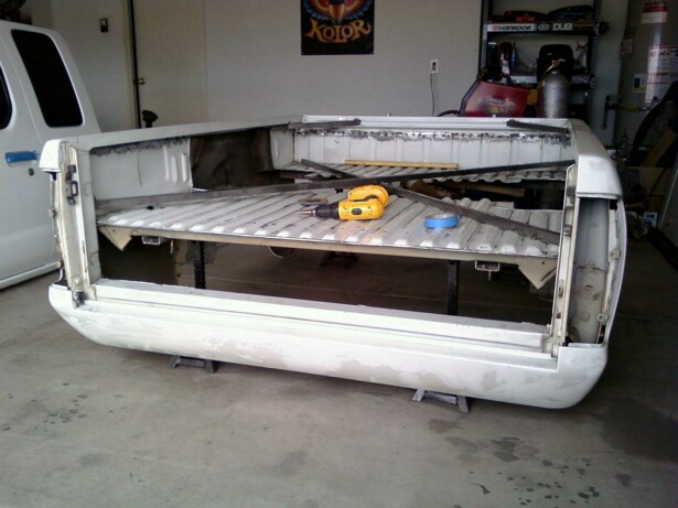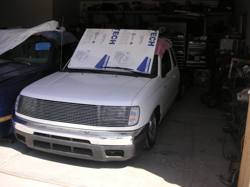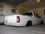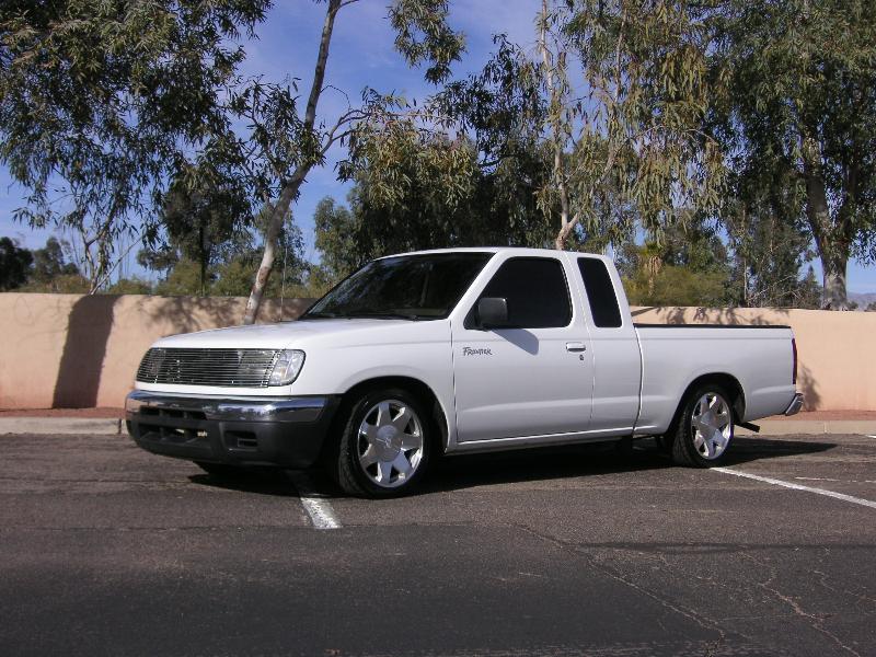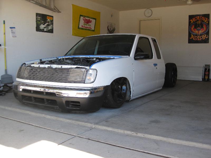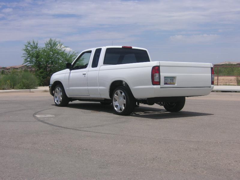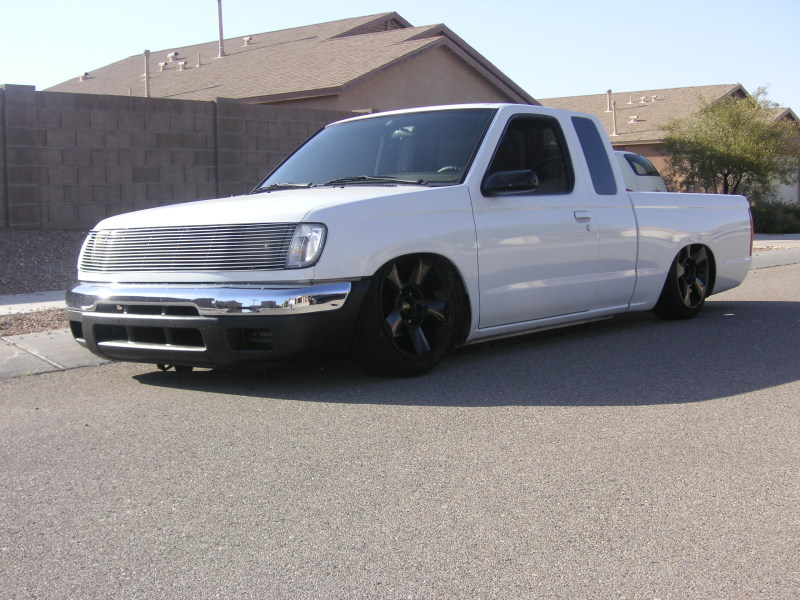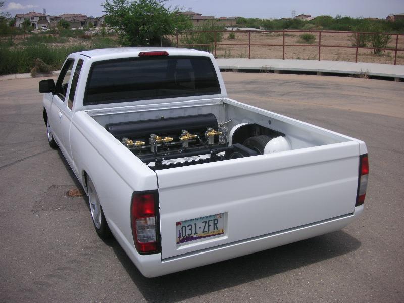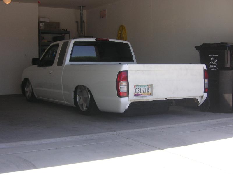 4" Body drop (2.5" stock floor, 1.5" traditional), tubbed for a 27" tire, Clear corners, 6k HIDs, 98-99 Frontier tails(clear reverse light), phantom grill, tint, solid rear window, checkermate tonneau cover, relocated handle, platebox in tailgate, smooth roll pan, shaved cowl, street scene mirrors