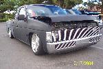 shaved tailgate and hood, checkmate flushmount tonneau cover, lexan window, chrome bumper with biller inserts, phantom grille, clear corners