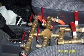 3/8 bags up front, 3/8 line, 3 CO2 tanks, manual valves, step notch, 1/2 conitech bags and 4 link