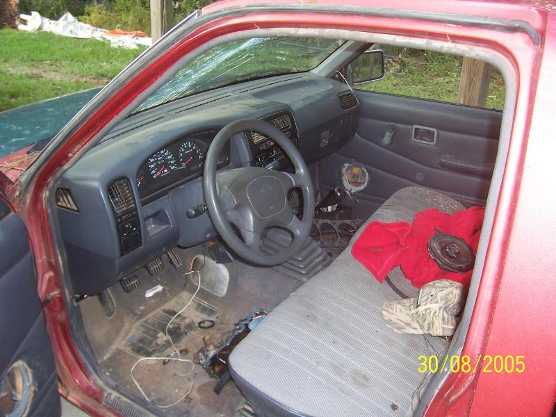 Shaved tailgate handle with nissan relocate in the center. Billet inserts in the bumper and grill.. Clear corners, Custom crome motorcycle mirrors, Billet wiper cowl vents, shaved hood squirters and hood emblem. Black euro tailights and a molded in roll pan..