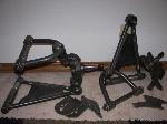 Triangulated 4-Link, 3/4 frame clip, Stock floor bodydrop,Slam bags all 4 corners,Upper and lower cando control arms,Belltech 2 inch spindles,Toyota conversion,Toyota rear axle, new brakes and rotors and drums,Blitzlift valves,Chrome tanks,2 Viar 380s,4 link end body mounts,Frame 100% tig welded.Everything new Swinger 30 amp relay