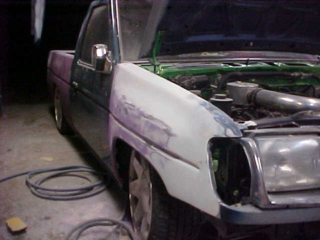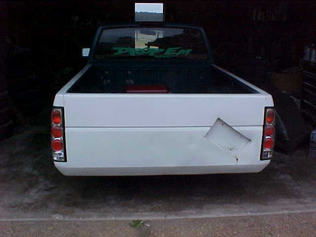 3 1/2 inch body drop , shave everything else that isnt shaved already, custom paint custom interior, toyota bumper, custom sheet metal bed floor, suicide tail gate, sliding rag top.