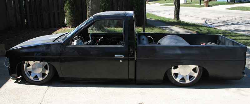 shaved rollpan, tailgate,side ways liscense plate, shaved antenna, full sheet metal bed smoothed with round notch.