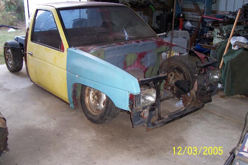 Alot. Main plan is to get it rollin. Update: Cab body drop done, frame painted. Time for motor and tranny. 5/10/06 Motor and tranny in. Front clip partially painted. Tryin to find a bed.Update 10/9/06 Got a bed startin on the bed floor.1-9-07 Been awhile. Bed sub floor done. Suicide's done. Sprayed floor of cab with bedliner. Now need to finish tail end and start workin on some little things to get it runnin.