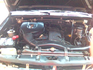 2.4L KA24E, stock. 5 spd with 3.55 gears. Drop-in K&N, AutoZone glasspack dumped at the axle.