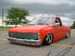 shaved hood emblem, hood squirters, door handles, 3rd brake light, tailgate handle; orange primer- i swear it's primer stock floor bodydrop, bout 3 inches, enough to lay rocker.