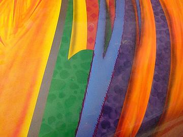 grey tweed, with 3d graphics in the doors, billet steering wheel with a few other pieces of billet