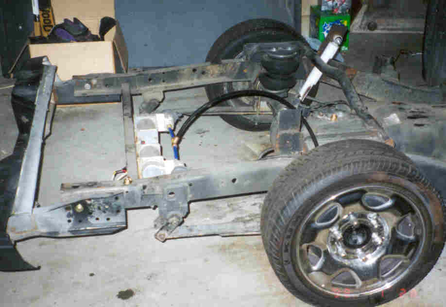 I got the bags set up taken care of by a friend of a friend, he did a bad ass job, got the 2 link with the pan hard bar, and he cleaned up ALOT of the work that the lame ass guys at AMS did. It finally lays frame now that mike redid the bag work. And i took it to James to get the wiring for the valves switches and compressors done.