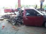 bagged with 1/2 smc valves and reversed triangulated cantilever with new frame from the motor back made out of 3x3x1/4" for a 3" stock floor body drop...yep stock hood and possibly stock bed...we'll se about that one