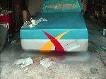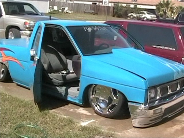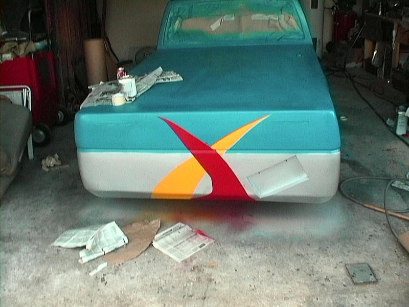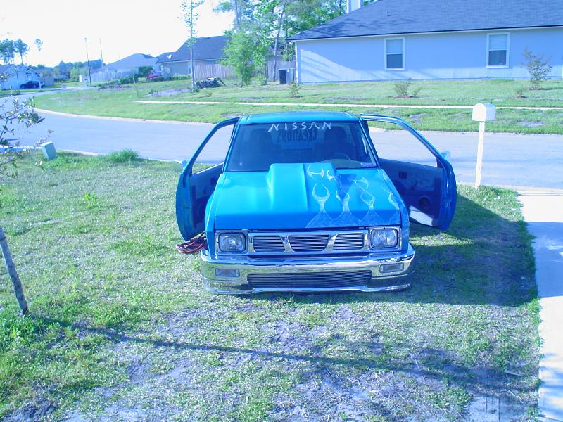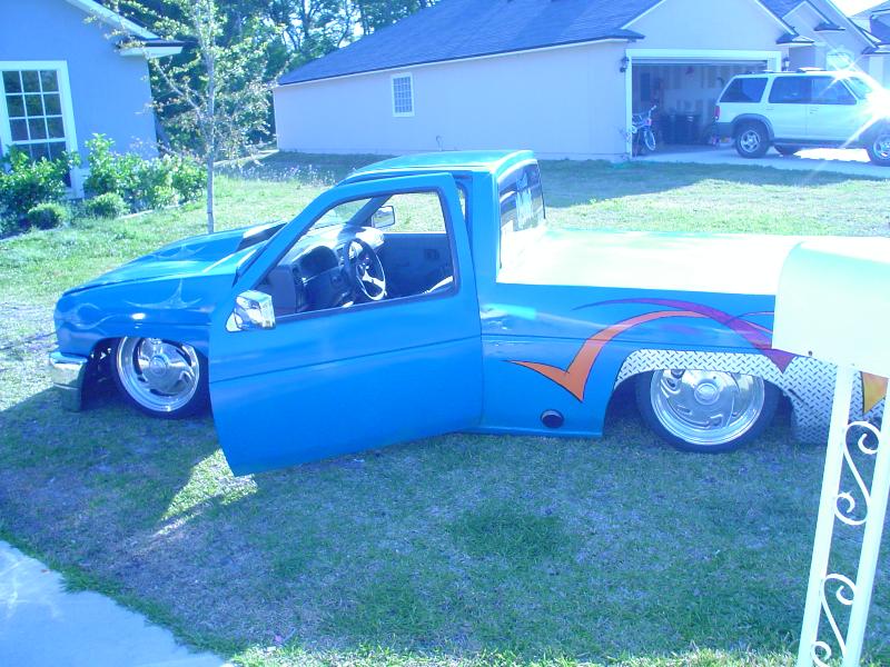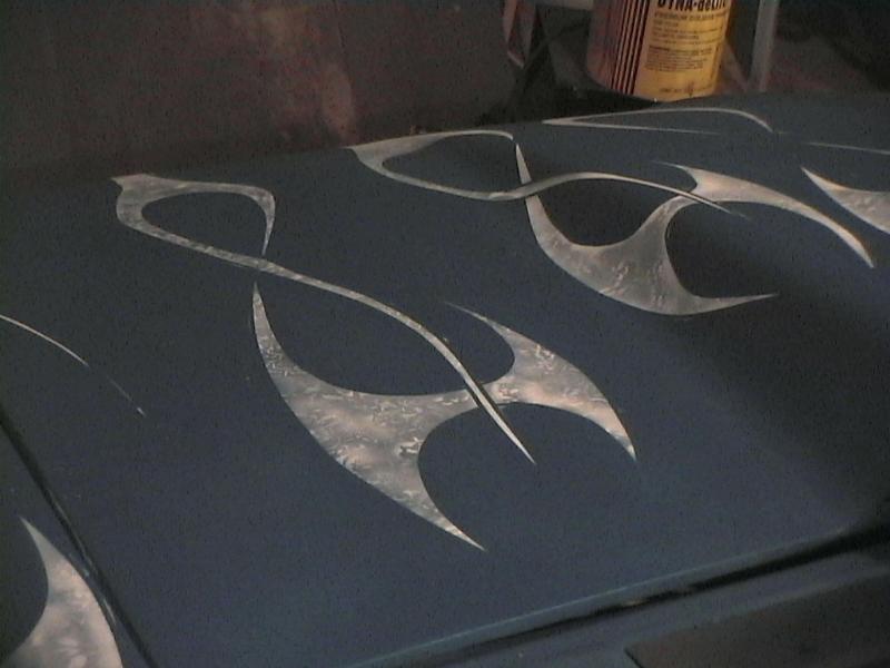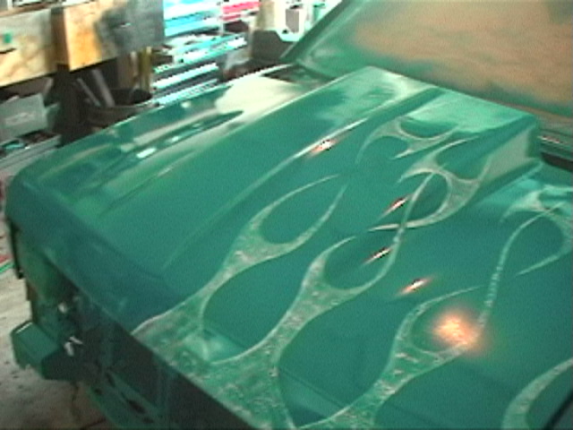 full shave suicide doors unibodied porshe turqoise blue w/ skulls , flames and graphics
