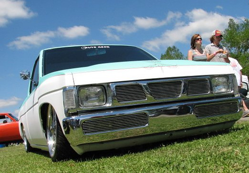 Shaved handles, shaved drip rails, shaved gas door, shaved third brake light, shave wiper cowl, full shaved ass end ,shaved antenna, Billet grill, 1 piece front bumper,billet insert in bumper, relocated gas door to bed, 13 inch LEDS