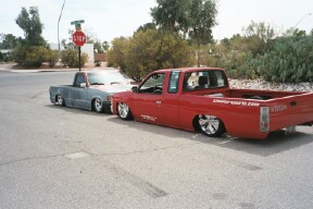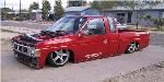 AIM (crap) Spindles, Air Bags , Toyota 5lug all the way around Finally got the 4 link in, still waiting on the torsion bar bag mounts. All air shit is relocated. it is coming along slowly