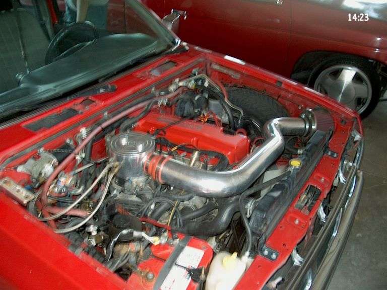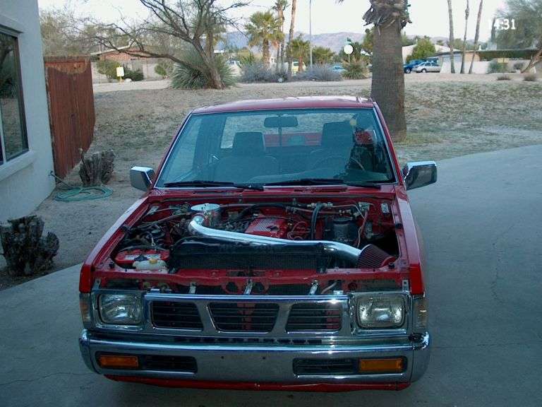 KA24E FBI intake, 100 shot, Powdercoated Valve cover, Flowmaster exhaust.