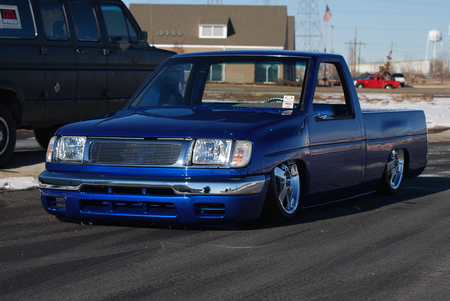 Bagged front and rear. Relocated front strut bars, 4-Link and bags over the axle in the rear.