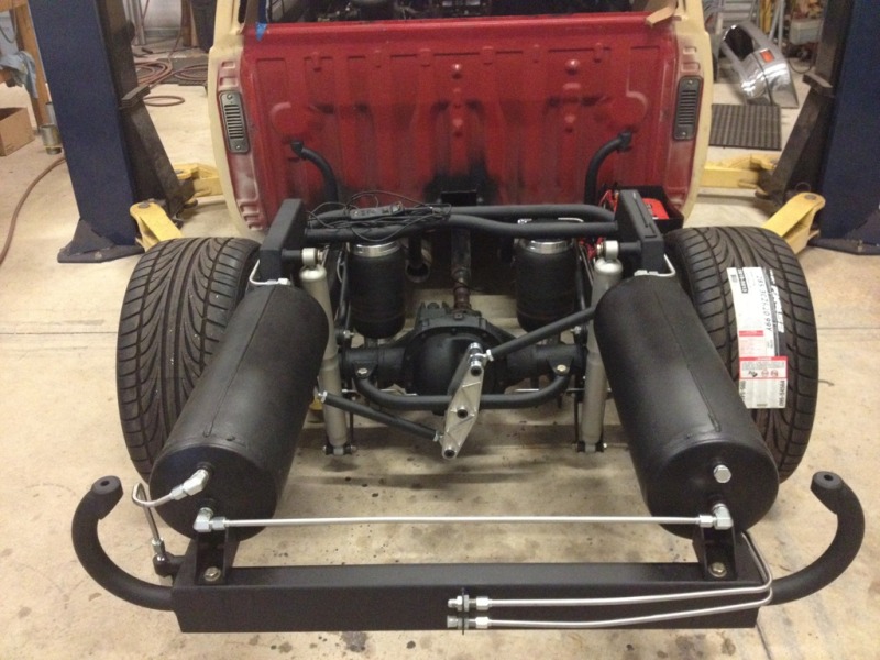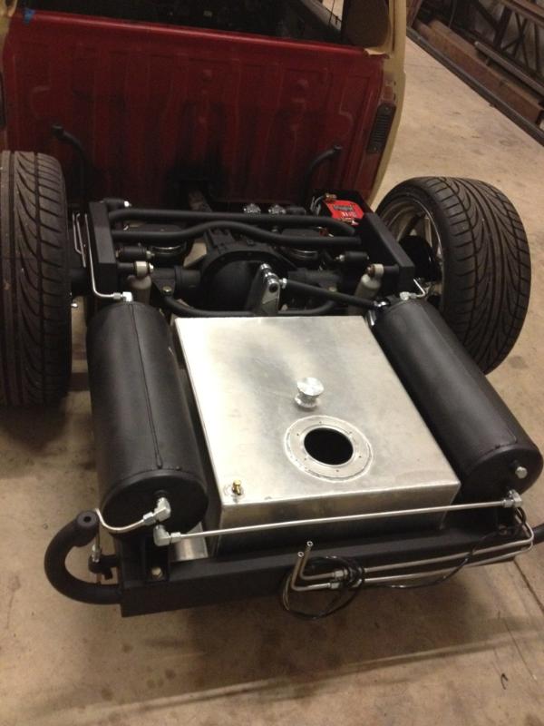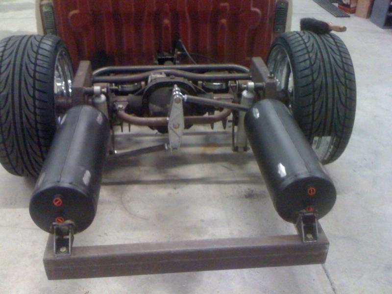 Fully custom built chassis by Jimmy's Rod and Custom, front sway bar, sleved bags in the rear