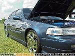 completely shaved, stillen body kit, custom made front lip, billet grill, clear corners, custom mixed blue paint with 9 pearls. 5% and 5 over 5% window tint with a 12" black vynal strip in front