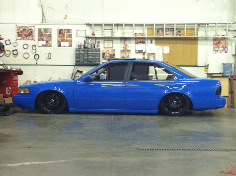 Shaved handles, 2010 Mustang Grabber Blue paint. Blacked out taillights.