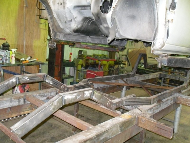 full frame with custom arms and custom 4 link. ballistic fab rod ends, heims on the control arms and ball joints from cando. mustang ii rack