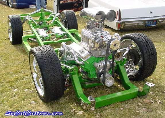 chrome-starter pulleys valve covers air filter radiator hoses oil pan holley blue fuel pump King Demon 850 carb custom aluminum fuel cell